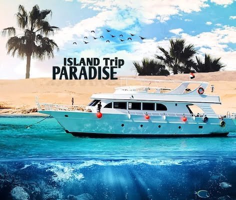 When all the passengers are on board, we will set sail and head to Paradise Island, where we will be after 45 minutes of pleasant sailing through the Red Sea.